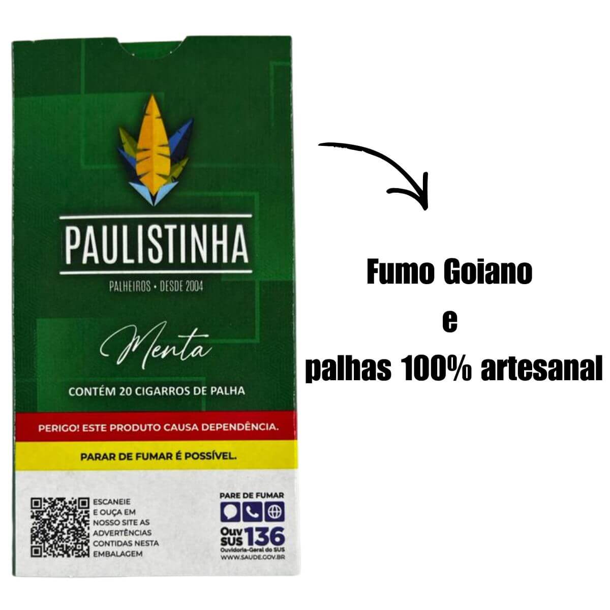 Você irá receber: 05 Maços de Paulistinha sabor menta com 100 cigarros de palha