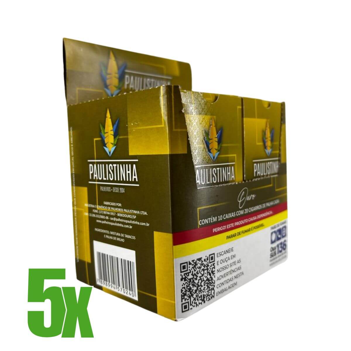 Quantidade por unidade de venda: Kit com 5 (cinco) displays de cigarro de palha Paulistinha Ouro.
